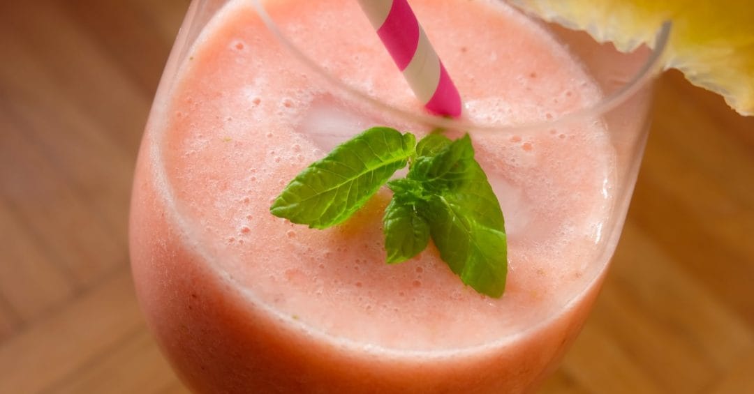 Heute geht es ganz gesund zu. Leckere Früchte mit gesundem Kokoswasser und die Limette gibt den Frischekick. Nach einem Wochende mit viel leckerem Essen, schmeckt der perfekt zum Frühstück. Für 1 Glas: 1 Reife Banane 100g geputzte Erdbeeren 100 ml Kokoswasser Saft von 1/2 Limette Einige Minzeblätter Eiswürfel Die Banane schälen, mit den Erdbeeren und dem Kokoswasser im Blender mixen. Den Limettensaft in den Smoothie träufeln. Noch einmal kurz mixen und abschmecken. Den Smoothie in ein Glas mit Eis schütten, mit den Minzblätter und einer Limettenschale genießen.